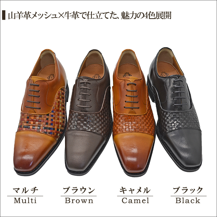山羊革メッシュ×牛革のコンビネーションが際立つ本モデルは、マルチ・ブラウン・キャメル・ブラックの4色展開。