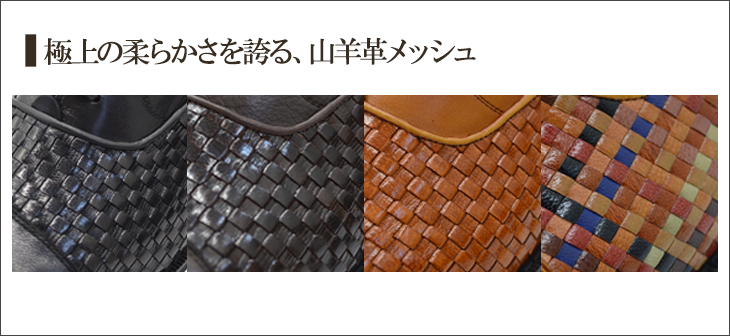 極上の柔らかさと足馴染みの良さが魅力の山羊革メッシュを贅沢に使用した、