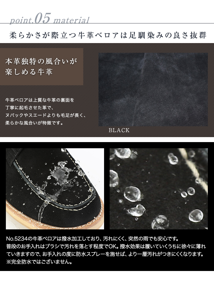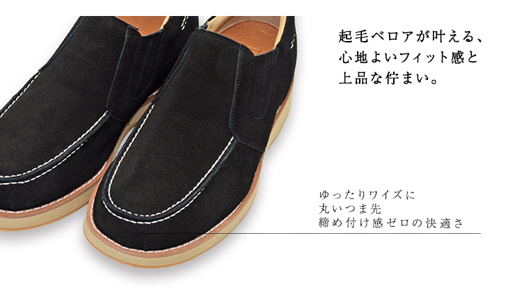履くほどに足に馴染み、虜になる柔らかな牛革ベロア素材を使用。